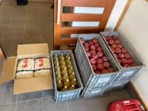 玄関先までお越しいただいて、お米やリンゴ、お野菜なんかをいただくことも多く、